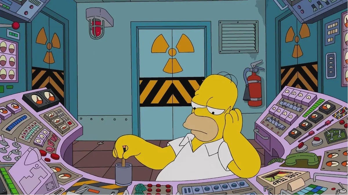 Hay un episodio de “Los Simpson” donde a Homer le sustituye una gallina en su trabajo en la central nuclear.